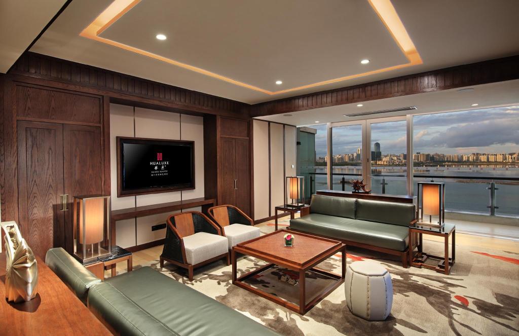 Located in Haikou, Hualuxe Hotels & Resorts Haikou Seaview is within a 10-minute drive of Holiday Beach and Meishi Mayflower International Golf Club. This 4.5-star hotel is 4.5 mi (7.2 km) from West Coast Golf Club and 9.6 mi (15.4 km) from Hainan Moonbay Golf Club.