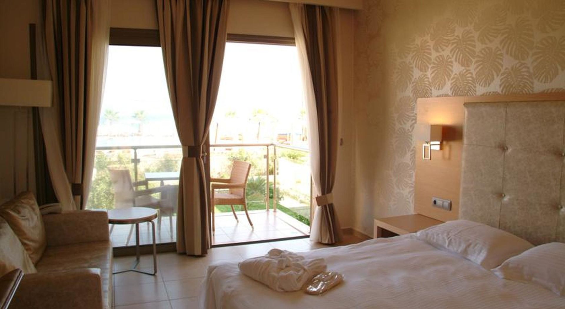 Air conditioning and individually adjustable heating ensure that rooms maintain comfortable temperatures. Guests can enjoy the sea view from a balcony or terrace. Rooms include a double bed. Extra beds can be requested. A safe and a minibar are also available. Additional features include a refrigerator and a tea/coffee station. An ironing set is provided for guests' convenience. A direct dial telephone, a television with satellite/cable channels, a DVD player and WiFi are provided as well. Bathrooms are equipped with a shower and a bathtub, as well as a hairdryer. Guests can also reserve wheelchair-friendly rooms with wheelchair-accessible bathrooms.