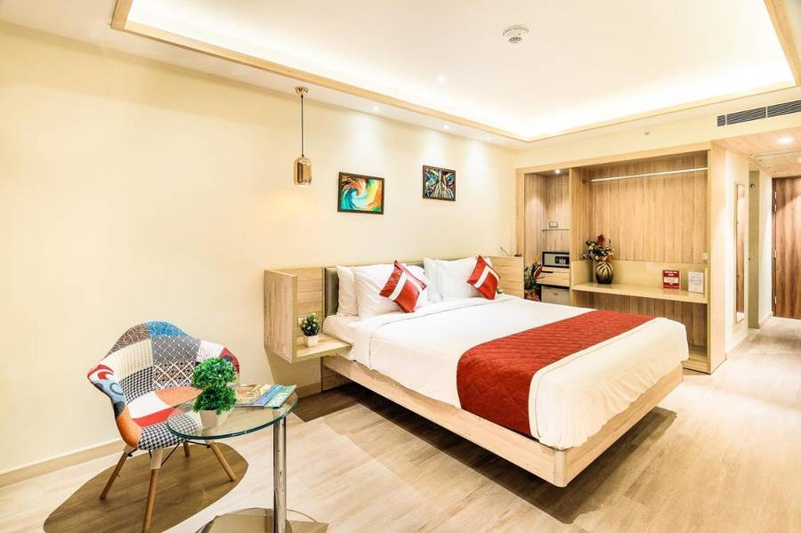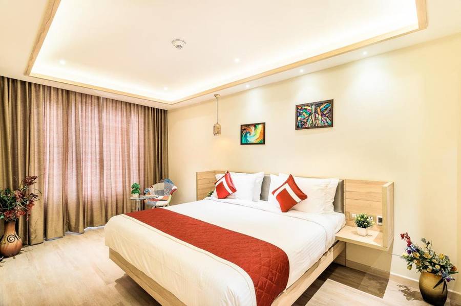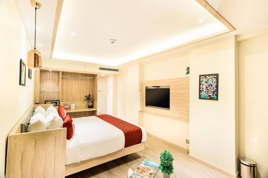 • The Deluxe Room measures 180 sq. ft in size and features a lavish king bed. Moreover, it offers stunning views of the city.