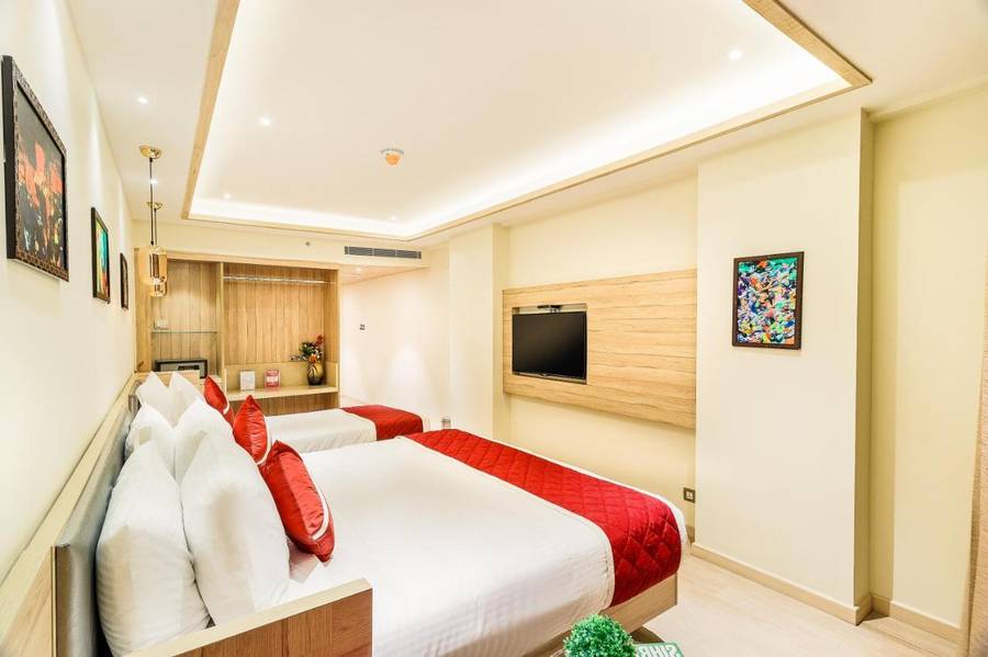 • The Premium Triple Room measures 250 sq. ft in size and features an opulent king bed or twin beds. Moreover, it can accommodate up to 2 adults.