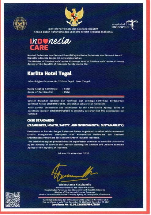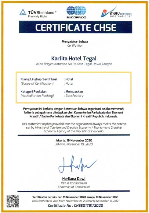 Karlita Hotel Tegal has a bar and a terrace in Tegal. Among the facilities of this property are a restaurant, a 24-hour front desk and room service, along with free WiFi throughout the property. The hotel features an indoor pool and a shared lounge.