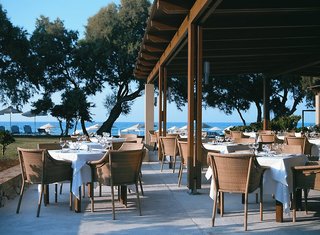 This 4-star hotel lies in a quiet area in Malia, right on a sandy beach that gently slopes into the water.