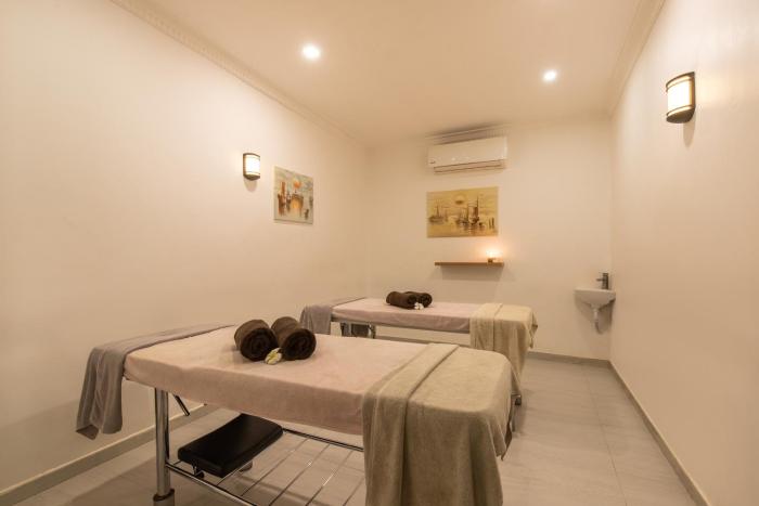 Air conditioning and a fan ensure that rooms maintain comfortable temperatures. Guests can enjoy the sea view from a balcony or terrace. Extra beds can be requested. A safe and, for a fee, a minibar are also available. Additional features include a mini fridge and a tea/coffee station. Other features include a telephone, a TV and WiFi (for a fee). The bathrooms have a shower, a bathtub and a whirlpool bath. For additional convenience, bathrooms also provide a hairdryer.