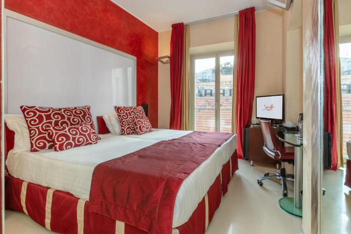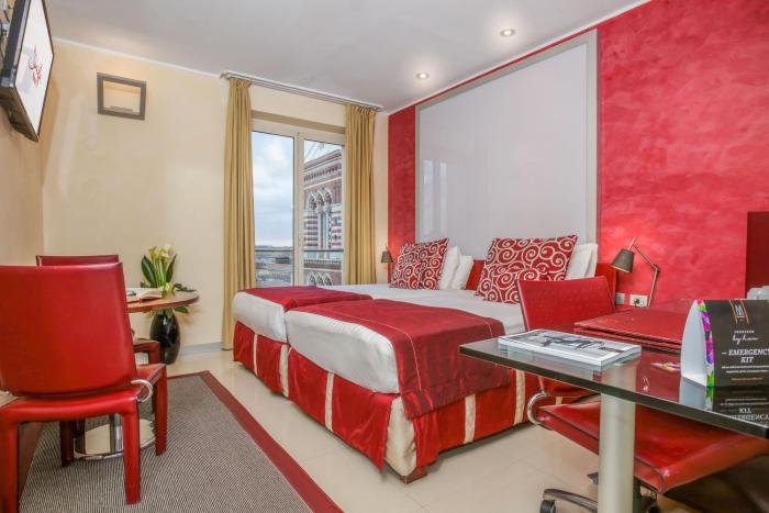 Located in the center of Rome, this urban hotel lies on a main road. Rome - Fiumicino (FCO) Airport is located about 20 miles away, and it is 6 miles to Rome - Ciampino (CIA).