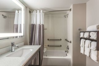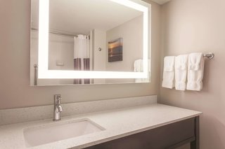 Enjoyed our stay at LaQuinta. Our room was clean and comfortable. The staff were very helpful. Will stay here again. Pet friendly was a bonus. Loved having no carpet in our room. No worries that fur...