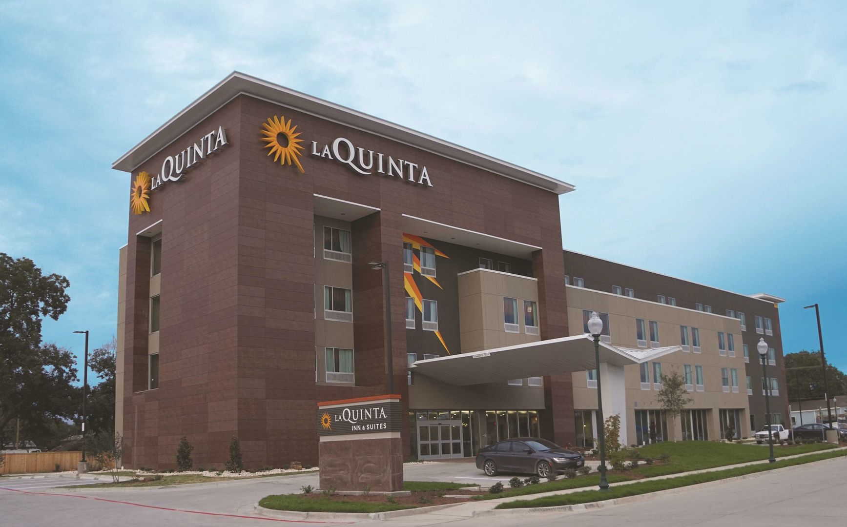 This hotel warmly welcomes guests in Waco.