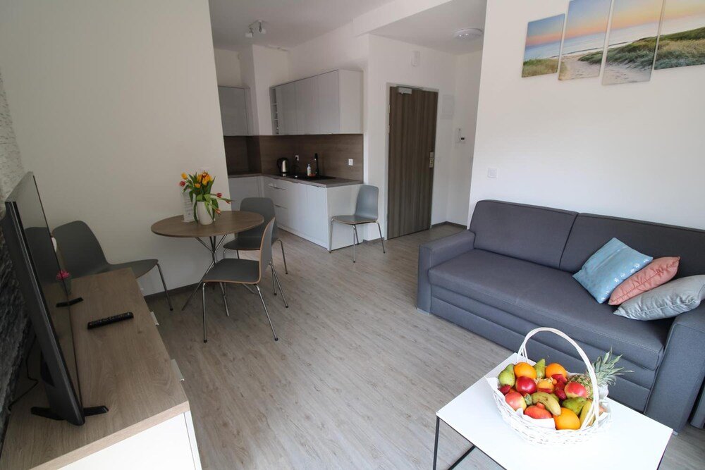 This apartment complex is located in Pobierowo, near a beach.