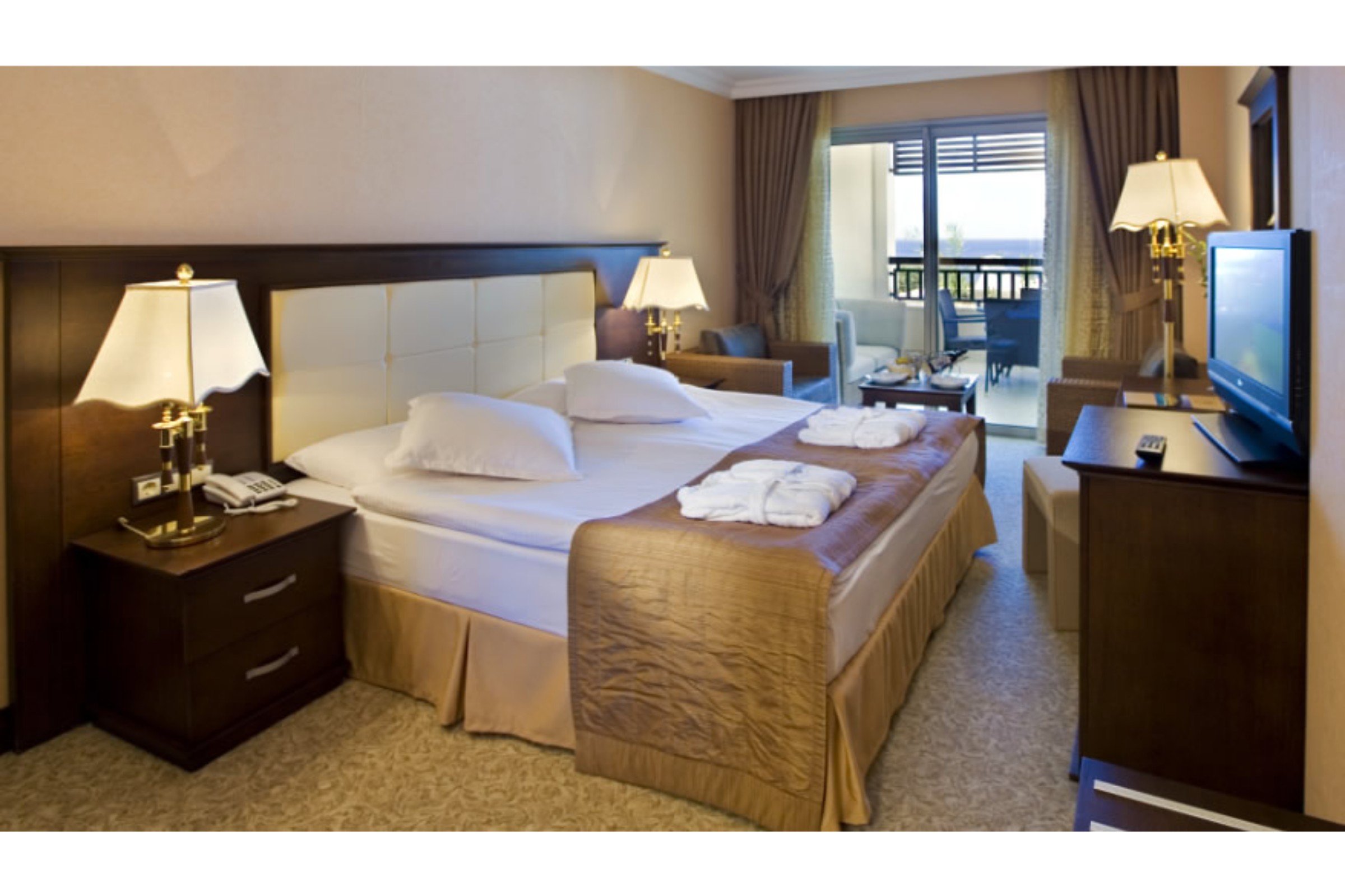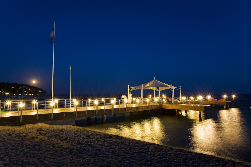 While the adults swim a few laps in the outdoor pool, children can enjoy splashing about in their own swimming area. A terrace with outdoor lounge chairs and umbrellas is available. There is a poolside snack bar as well. The wide range of activities offered at the hotel ensures that there is something new to do every day, including tennis, bocce, beach volleyball, miniature golf and archery. Guests can take part in a comprehensive water sports program, which includes paddle boating, sailing, catamaraning and aquafit, with water skiing, windsurfing, jet skiing, banana boat rides, canoeing and diving available for a fee. Sports enthusiasts are also offered a wide range of indoor activities, including a gym, table tennis, billiards, darts, callisthenics and aerobics. Various wellness options are available at the hotel, including a sauna, a hammam, massage treatments and a solarium. Recreational facilities include an entertainment program, a kids' club, live music, a dance club and a nightclub.