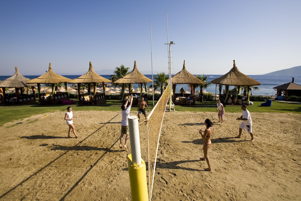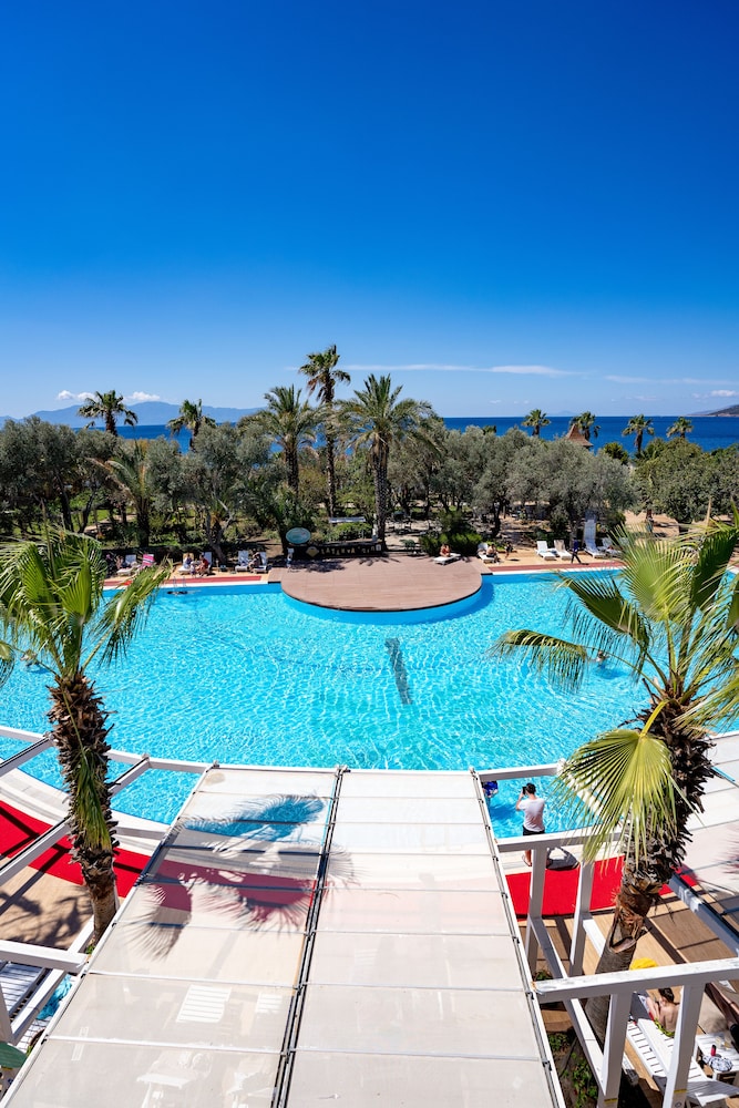 Ideal for beach vacationers and families, this club resort is situated on a main road in Yaliciftlik, right on the sand and pebble beach. Public transportation stops are just outside the door. The nearest airport is Bodrum - Milas - Mugla (BJV), located approximately 25 miles away.