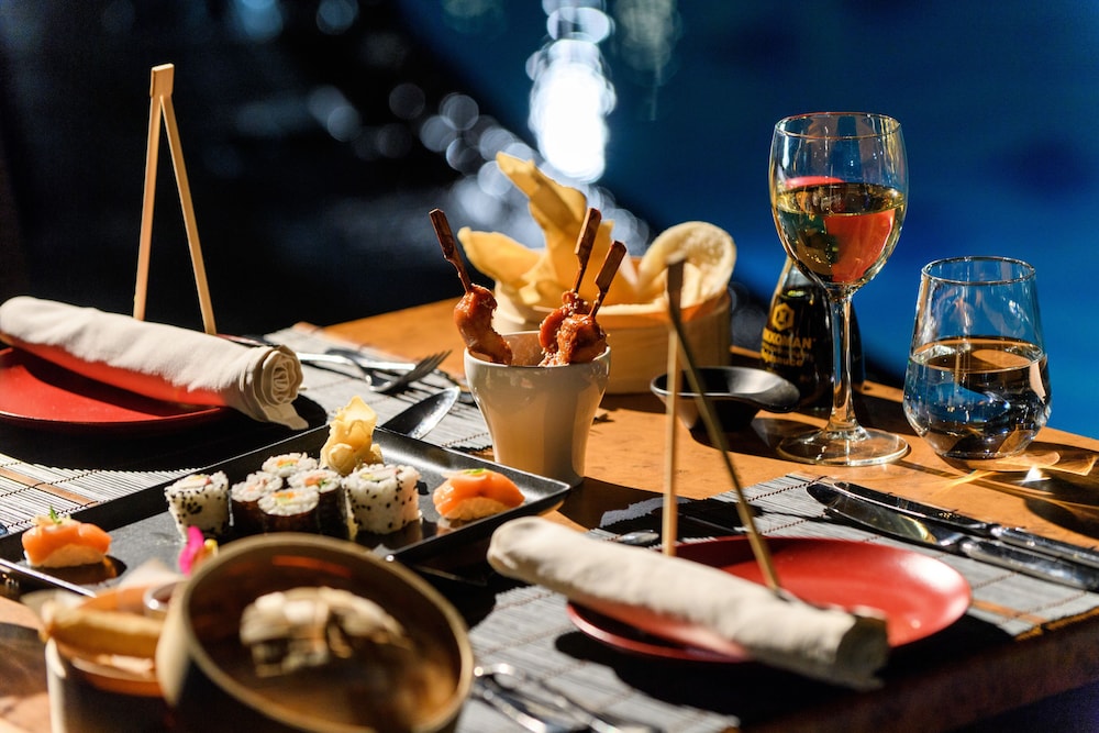 The hotel includes a restaurant and a bar. Breakfast, lunch and dinner are available. The hotel also offers snacks. The hotel offers a selection of alcoholic and non-alcoholic beverages.
