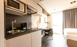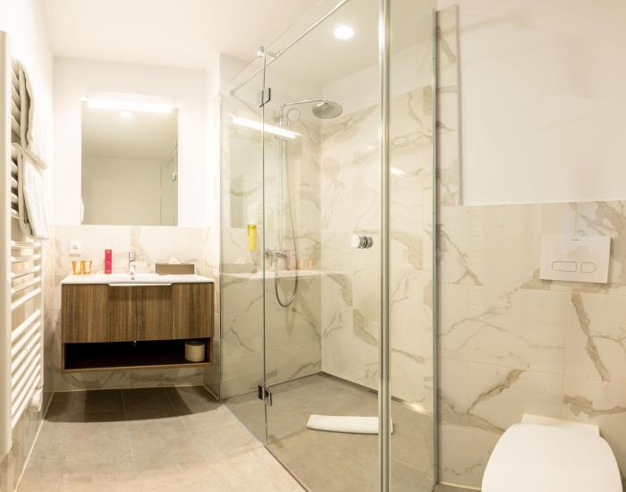 Rooms feature a kitchen and a bathroom, and central heating ensures just the right temperature. Guests are sure to get a good night's sleep in the double bed. Separate bedrooms can be reserved. Extra beds can be requested. A safe and a desk are also available. All kitchenettes come with a refrigerator, a microwave and a tea/coffee station. A telephone, a TV and WiFi (no extra charge) provide all the essentials for a comfortable vacation. A hairdryer and a vanity mirror are available in the bathrooms, which are equipped with a shower. Wheelchair-friendly rooms with wheelchair-accessible bathrooms are also available. The hotel has non-smoking rooms.