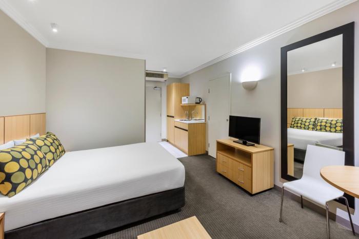 Air conditioning ensures that rooms maintain comfortable temperatures. Valuables can be securely stored in a safe. All kitchenettes come with a refrigerator, a microwave and a tea/coffee station. Other features include a direct dial telephone, a TV and a radio. Bathrooms are equipped with a shower. Family rooms are available for parents with children.