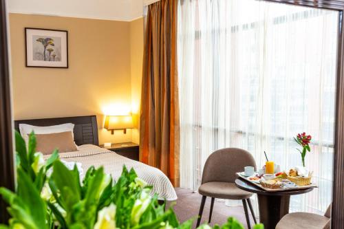 With clean and large bedroom, it is a real european 4 star hotel. Continental breakfast served in the hotel is good for the price. Good relation cost/benefit and it seems to be a child friendly...