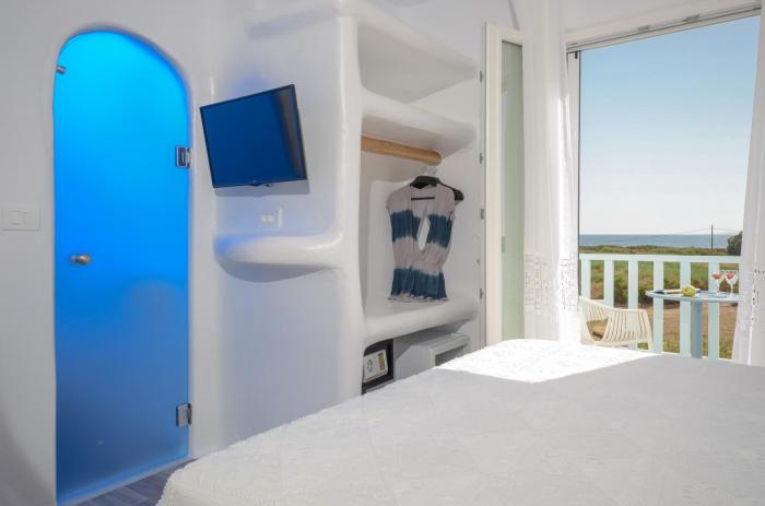 This apartment hotel is located in Plaka Beach, right on the beach.