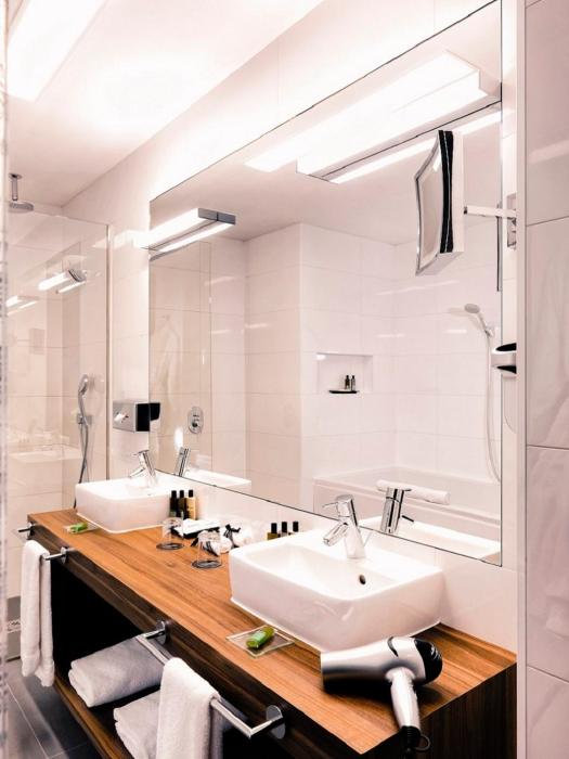 Air conditioning and central heating ensure that rooms maintain comfortable temperatures. All rooms are carpeted and include a double bed. Children's beds can be requested for younger guests. A safe and a minibar are also available. A mini fridge and a tea/coffee station are standard features. A telephone, a television with satellite/cable channels, a radio and WiFi provide all the essentials for a comfortable vacation. Slippers are included. A hairdryer and bathrobes are available in the bathrooms, which are equipped with a shower and a bathtub. Wheelchair-friendly rooms with wheelchair-accessible bathrooms are also available. The hotel has family rooms and non-smoking rooms.