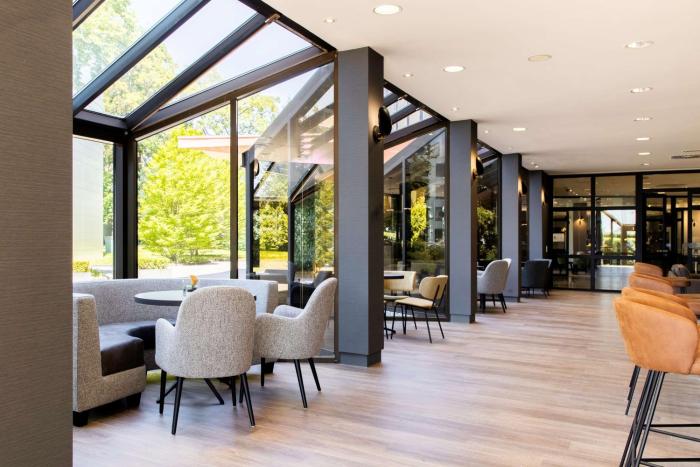 The hotel has 148 rooms, including 12 suites and 100 double rooms, which are located on 4 stories and are reachable by elevator. Check-in and check-out are possible at any time at the 24-hour reception desk. A coat check, a baggage storage service, a safe, room service, a laundry service, a conference room and a business center are available. Wireless internet access is provided in public areas. Wheelchair-accessible facilities are available. Guests arriving by car can park their vehicles in the parking lot. Services include a hotel shuttle bus. Travelers with bicycles can make use of the on-site bicycle storage area.
