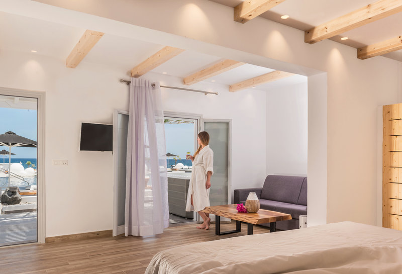 Air conditioning ensures that rooms maintain comfortable temperatures. Guests can enjoy the sea view from a balcony or terrace. Children's beds and extra beds can be requested for younger guests. A minibar is provided. Guests will also find a mini fridge included among the standard features. Other features include a direct dial telephone, a TV, a radio and WiFi. Bathrooms include a hairdryer and are equipped with a shower and a bathtub.