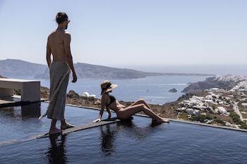 This hotel warmly welcomes guests in Oia.