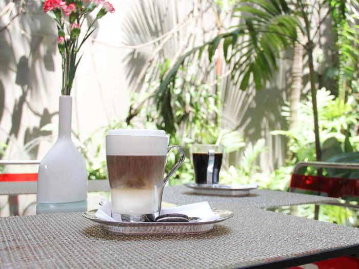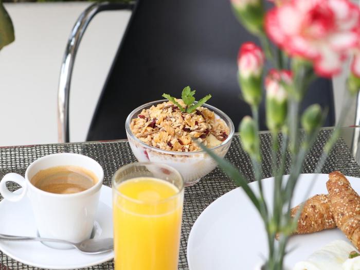 Fine weather can be enjoyed on the terrace. The pool bar serves a selection of refreshing drinks. A wellness area with massage treatments is available at the hotel.