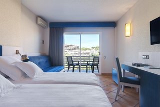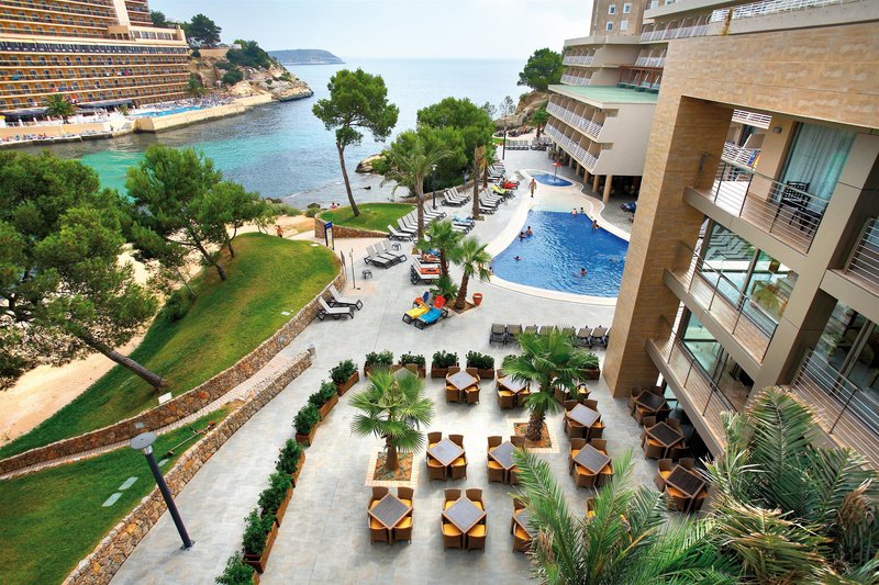 Great hotel, amazing location on a beautiful cove. Food and drinks good, and a short car journey into Magaluf. Pool area great, with beautiful views of the sea, family rooms better than the upgraded...