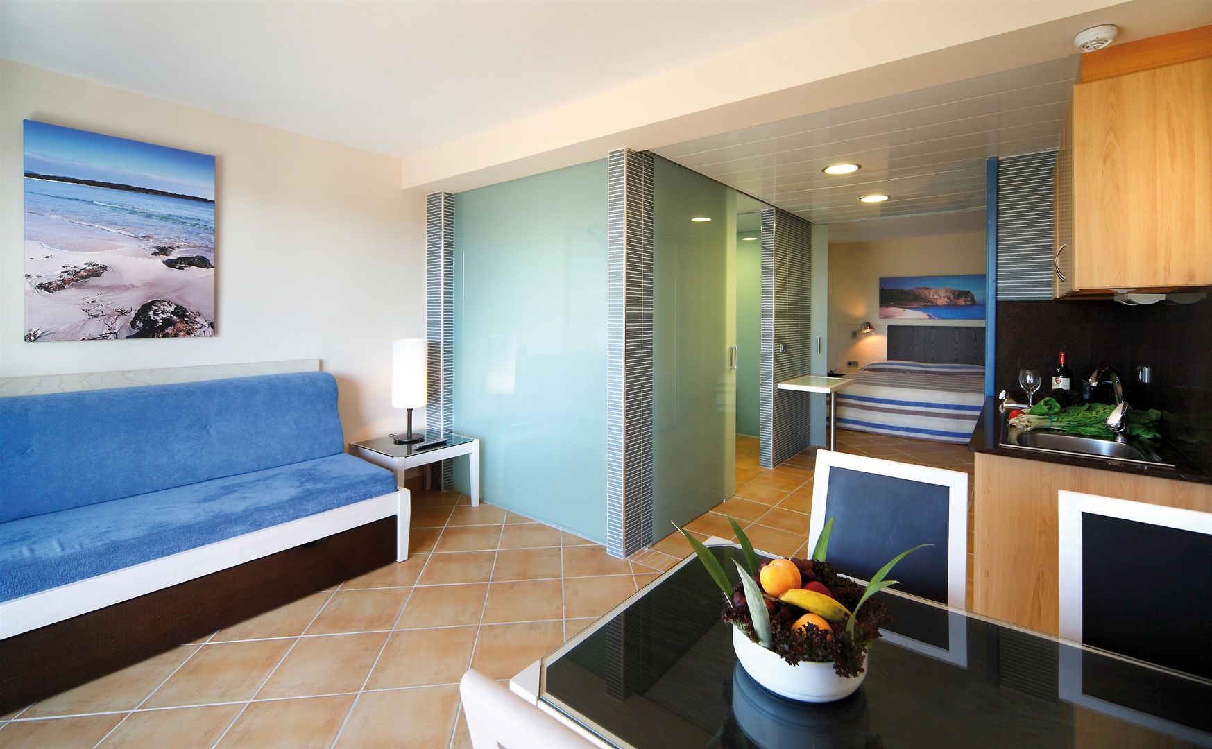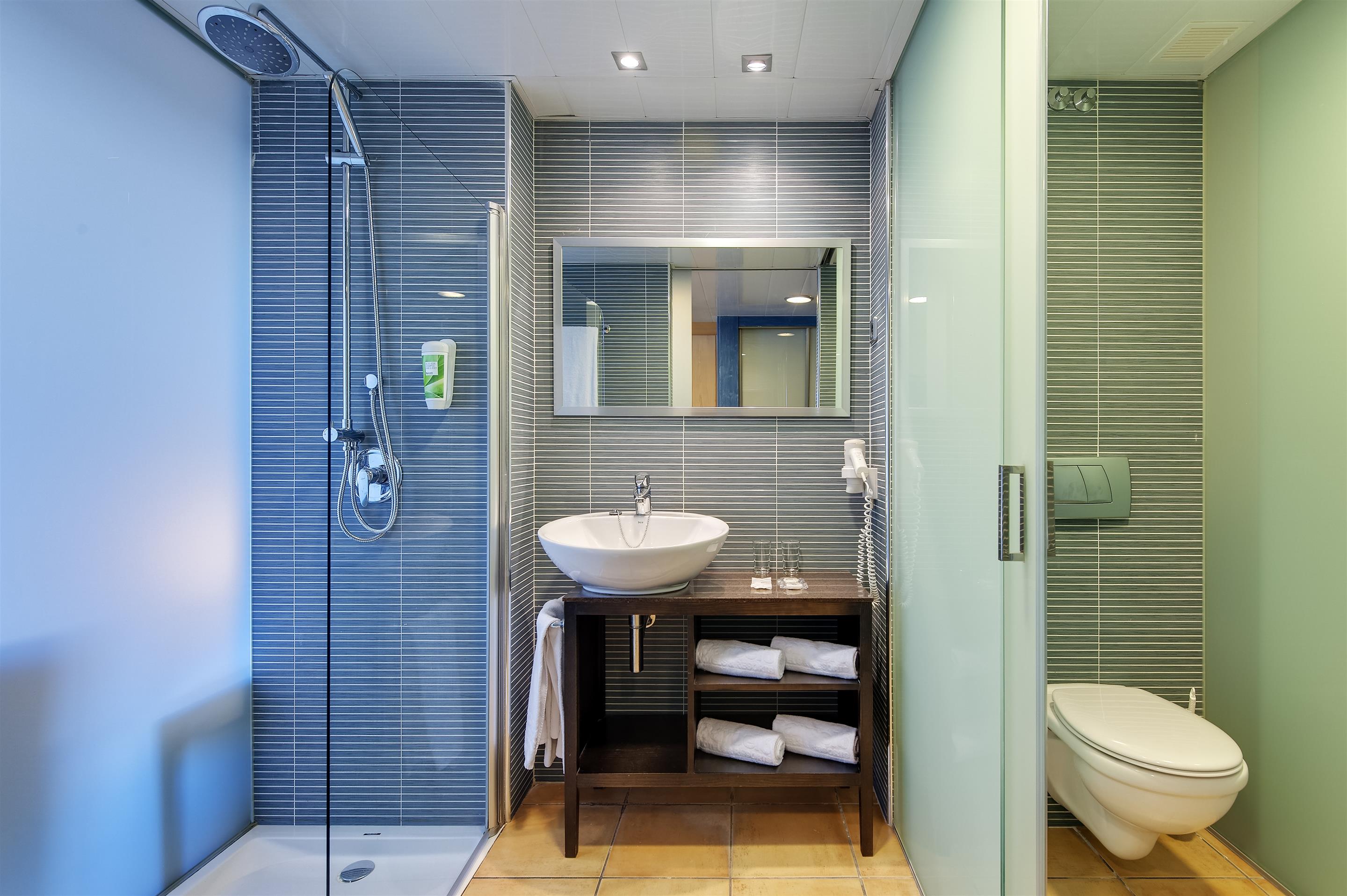 Air conditioning and central heating ensure that rooms maintain comfortable temperatures. Guests can enjoy the sea view from a balcony or terrace. Rooms have a double bed, a king-size bed or a sofa bed. Valuables can be securely stored in a safe. Guests will also find a refrigerator included among the standard features. A direct dial telephone, a television with satellite/cable channels and WiFi (no extra charge) provide all the essentials for a comfortable vacation. Bathrooms are equipped with a shower and a bathtub, as well as a hairdryer. Family rooms are available for parents with children.