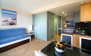 The apartment hotel has an elevator and features 326 double rooms. The reception desk in the lobby is staffed around the clock. Valuables can be securely locked in the safe. Wireless internet access allows guests to stay connected while on vacation. A variety of shops are available, including a supermarket and souvenir shop. The grounds of the hotel feature a playground and a lovely garden. Additional facilities include a playroom. Guests arriving by car can park their vehicles in the parking lot. Further services and facilities include a babysitting service, a childcare service, medical assistance, a wake-up call service and a laundry service.