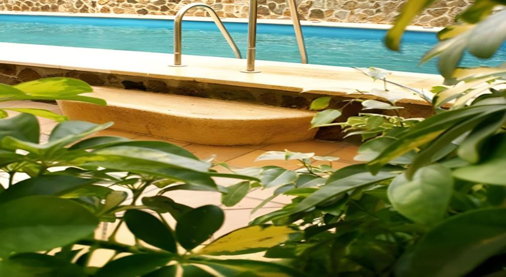 Guests can enjoy a refreshing swim in the outdoor pool area.