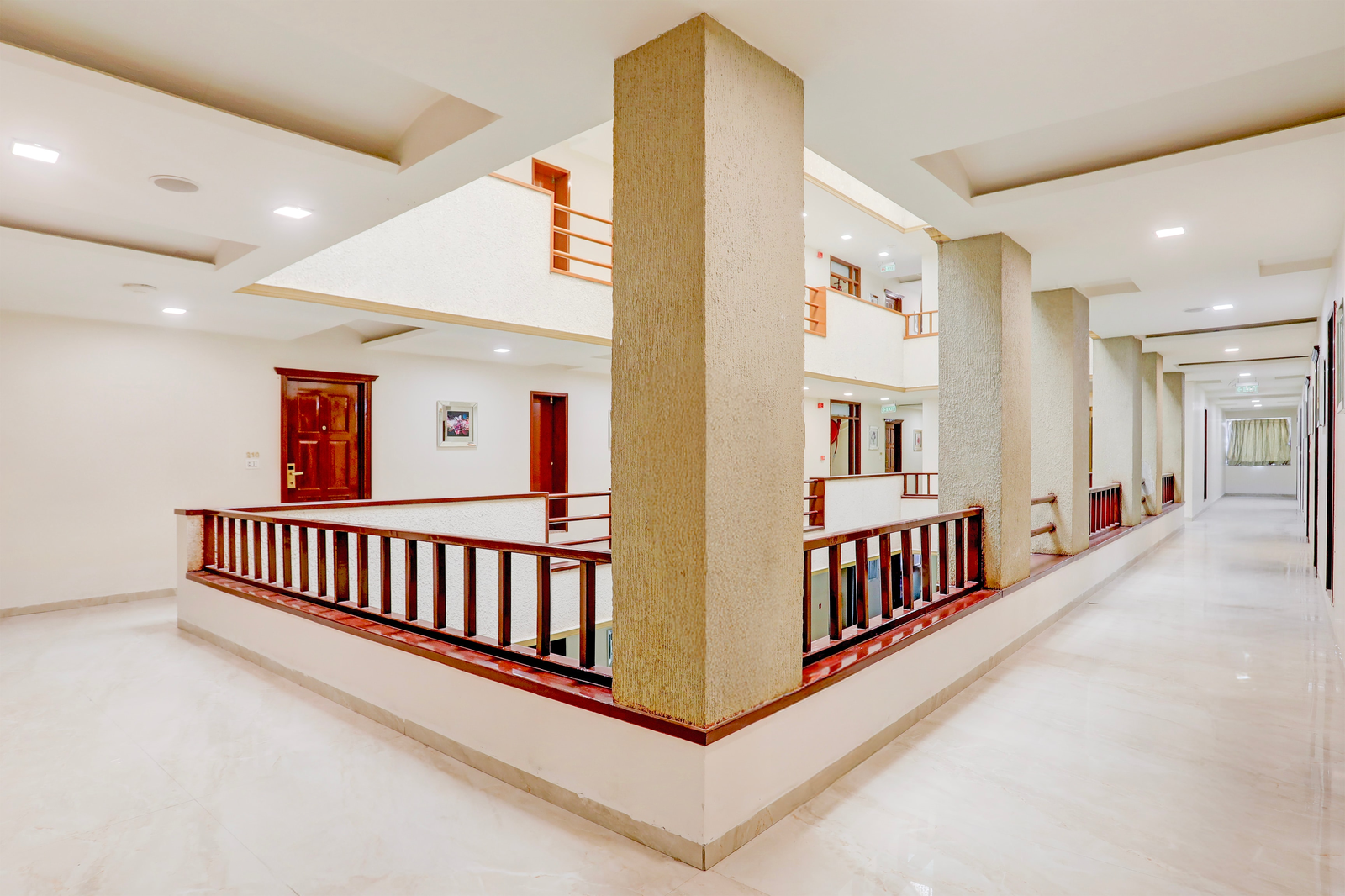 We got our rooms on the second floor, the rooms were big, clean with nice velvet decor. The staff was prompt in their service. The hotel has a decent parking place as well the lobby and restaurant...