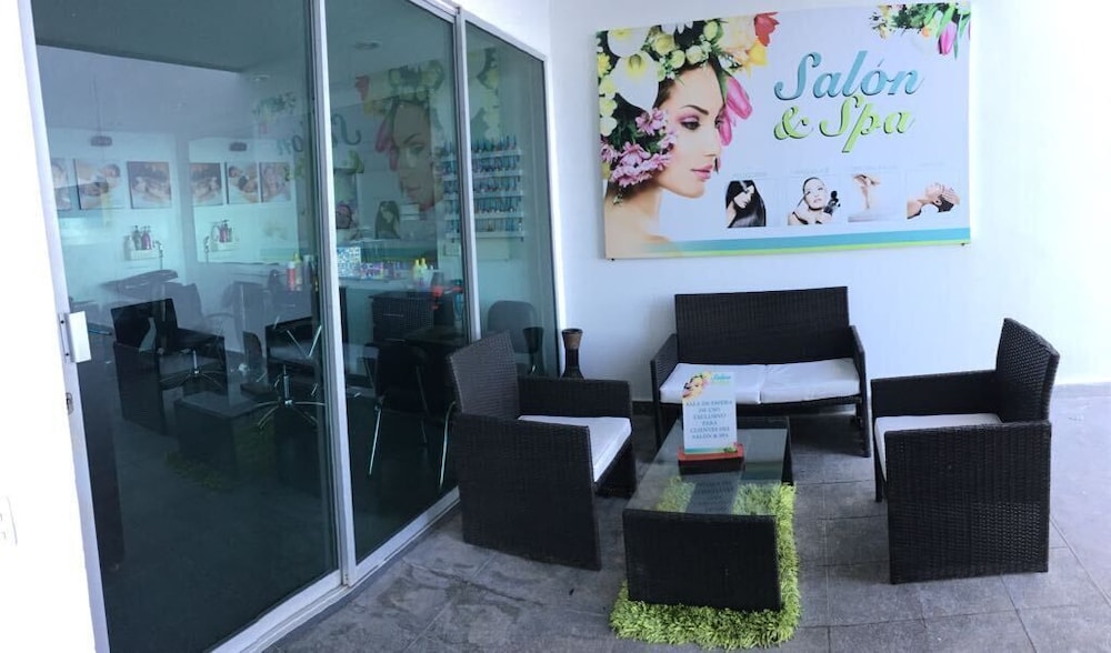 This apartment complex welcomes guests in Cartagena.