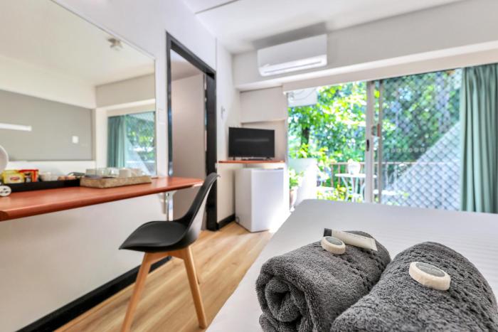 The rooms include air conditioning, a kitchen and a bathroom. Some rooms have a balcony, which gives guests additional space for rest and relaxation. Guests are sure to get a good night's sleep in the double bed. Additional features include a refrigerator and a tea/coffee station. An ironing set is provided for guests' convenience. There is a TV and WiFi in the rooms. Bathrooms include a hairdryer and are equipped with a shower and a bathtub. The resort has non-smoking rooms.