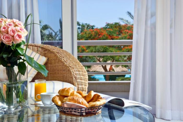 Air conditioning and central heating ensure that rooms maintain comfortable temperatures. Guests can relax and enjoy partial sea views from the balcony or private terrace of some rooms. Some units offer a beautiful sea view. Guests are sure to get a good night's sleep in the king-size bed. Extra beds or children's beds can be provided upon request. There is also a safe and, for a fee, a minibar. Guests will also find a tea/coffee station included among the standard features. Other features include a telephone, satellite television, a radio and WiFi (for a fee). Bathrooms are equipped with a shower and include a hairdryer. 2 wheelchair-friendly rooms can be reserved. The hotel has non-smoking rooms and smoking rooms.