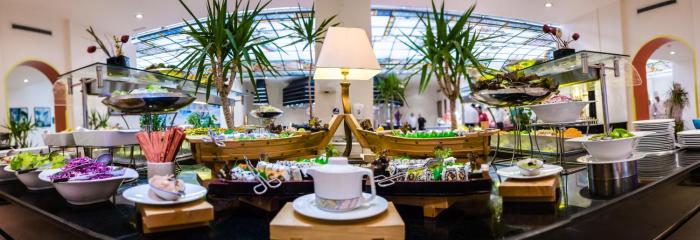 Various dining options are available, including a café, a bar and a lobby bar. Delicious specialties await guests in 7 non-smoking, air-conditioned restaurants. Refreshing drinks at the beach bar are a perfect way to enjoy warm weather. Catering options include half board, full board and all-inclusive. An American breakfast à la carte gives guests many delicious reasons to get out of bed in the morning. At lunch and dinner, there are plenty of tempting options at the buffet or à la carte. Dinner is also served as a set menu. Diet meals, gluten-free meals, vegetarian dishes and halal food can be prepared on request. Baby food is available for little ones. The hotel also offers snacks. The hotel offers a selection of alcoholic and non-alcoholic beverages.