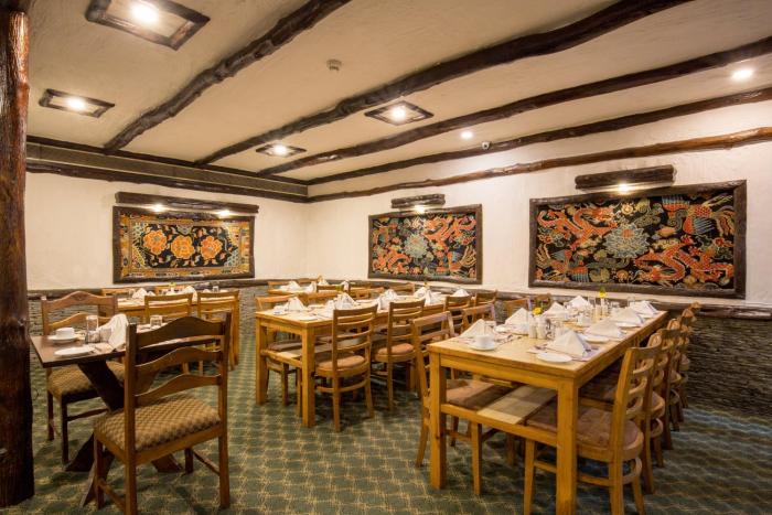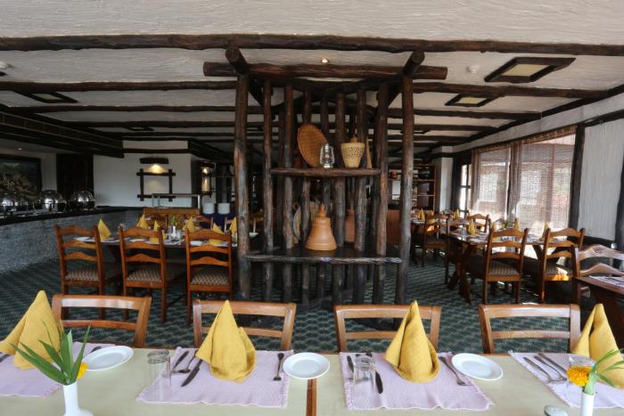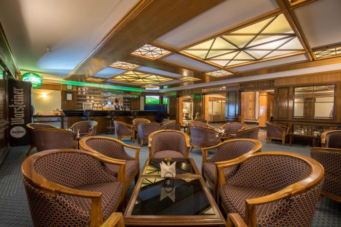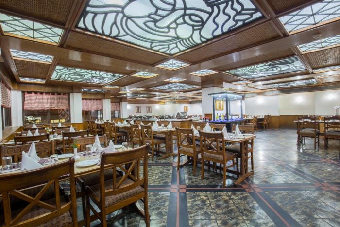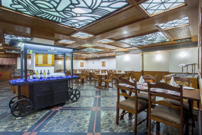 The dining area includes a restaurant with air conditioning and a bar.