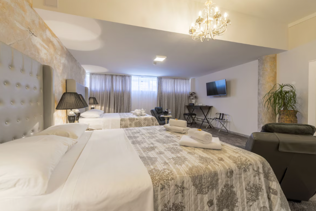 Rooms are equipped with air conditioning and central heating. The rooms have a double bed and a sofa bed. A minibar is provided. Guests will also find a refrigerator included among the standard features. Equipped with a telephone, satellite television and WiFi, the rooms provide many ways for guests to stay connected and entertained. Bathrooms include a hairdryer and are equipped with a shower and a bathtub.