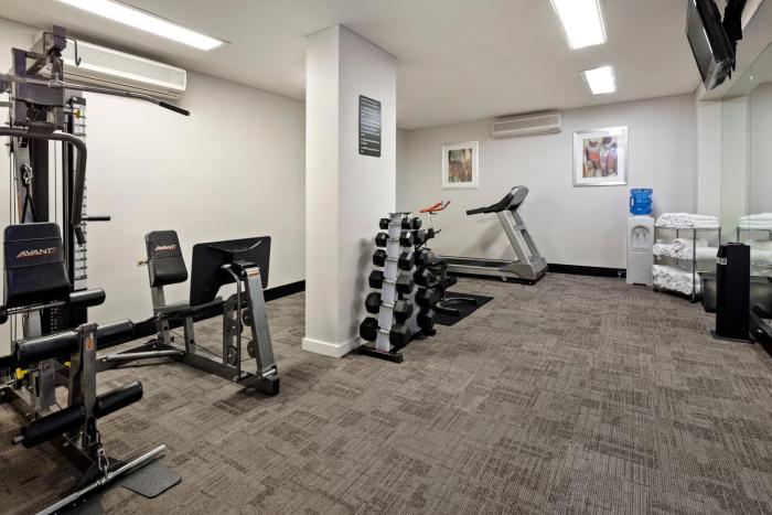 Fine weather can be enjoyed on the terrace. After an eventful day, guests can work out and recharge in the gym.