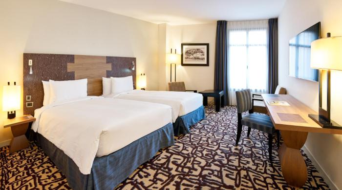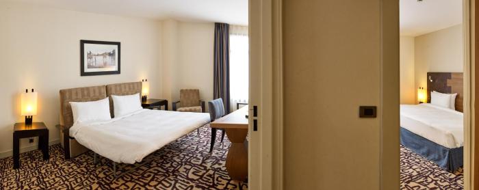 Air conditioning ensures that rooms maintain comfortable temperatures. Rooms have a double bed or a king-size bed. A safe, a minibar and a desk are also available. Additional features include a mini fridge and a tea/coffee station. An ironing set is provided for guests' convenience. A telephone, a television with satellite/cable channels, a radio and WiFi are provided as well. Bathrooms are equipped with a shower and a bathtub, as well as a hairdryer. Wheelchair-friendly rooms can be reserved. The hotel has 189 non-smoking rooms.
