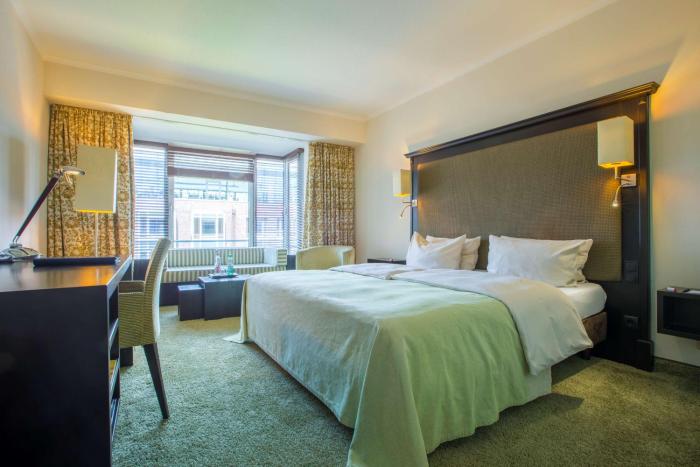 Rooms are equipped with air conditioning and individually adjustable heating. All rooms are carpeted and include a double bed or a king-size bed. A safe and, for a fee, a minibar are also available. Additional features include a mini fridge and a tea/coffee station. A direct dial telephone, a television with satellite/cable channels, a radio and WiFi are provided as well. Bathrooms are equipped with a shower and a bathtub, as well as a hairdryer. Guests can also reserve wheelchair-friendly rooms with wheelchair-accessible bathrooms. The hotel has non-smoking rooms.
