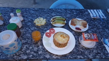We saw the hotel on booking.com and get there without reservation. Cheapest rooms we could find in all Myanmar. Big room with private bathroom, fan and Sat TV..really big breakfast included...