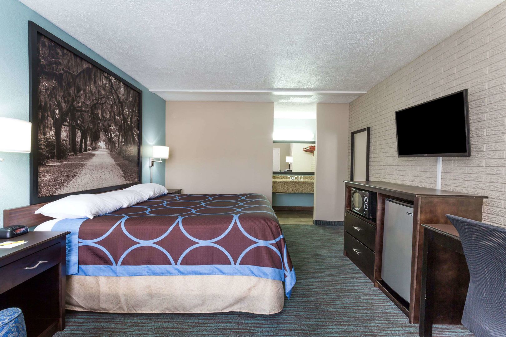This Super 8 has been renovated. The no smoking room had a King size bed, desk flat screen LED TV, free WiFi, nice shower and plenty of hot water. Since it winter the pool was close. Front desk...