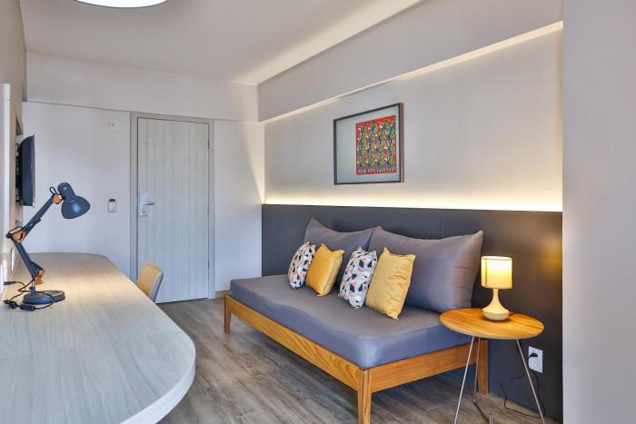 Rooms feature a living area, a kitchen and a bathroom, and air conditioning ensures just the right temperature. Some rooms have a balcony, which gives guests additional space for rest and relaxation. Children's beds can be requested for younger guests. A minibar is provided. Simple meals can be prepared in the kitchenette. Other features include a telephone, a flatscreen television and WiFi. Bathrooms are equipped with a shower and a hairdryer. The hotel has family rooms and non-smoking rooms.