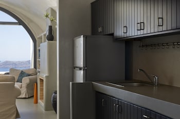Removed from the crowds, gorgeous sunset views from your room, right on Oia-Fira path