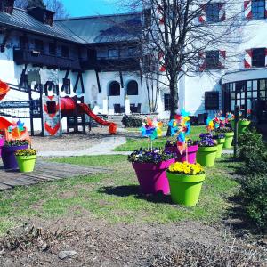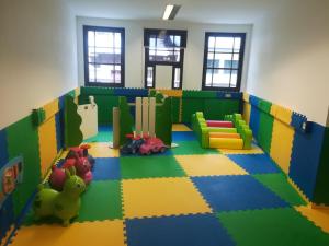 The rooms are located in a former castle, and everything in the decoration refers to this. it is very romantic, good restaurant, comfortable and big rooms, nice welness, pool, playgarden for the...