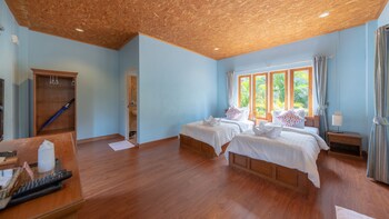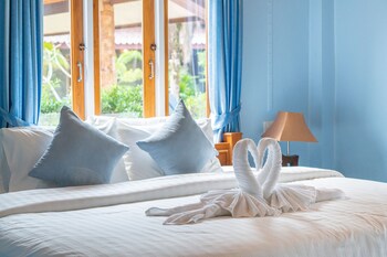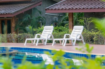 A gem of a resort. Kind attentive staff, fan swimming pool and beautifully manicured gardens. The chalet we had was by the pool. Aircon, TV, fridge (2 complimentary bottled of water a day).Sizeable...