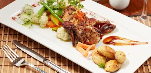 The dining area includes a restaurant and a bar. A fortifying breakfast is served daily.