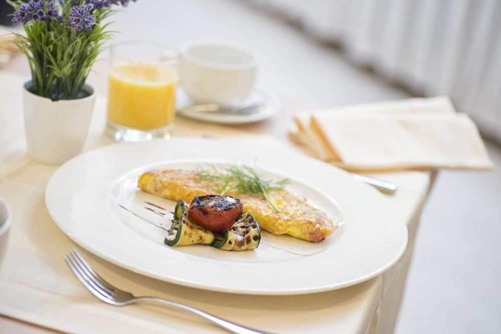 The dining area includes a restaurant and a bar. A delicious breakfast provides energy for the rest of the day. The hotel also offers snacks.
