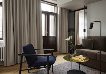 This hotel is located in the heart of Helsinki. It is about 350 yards to the nearest public transportation.