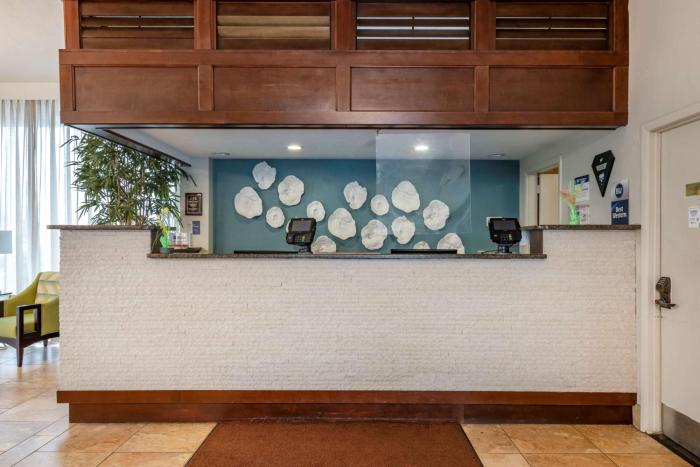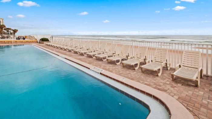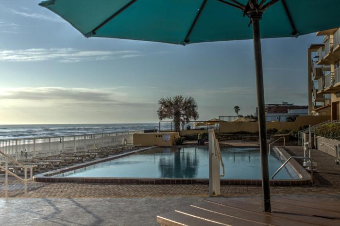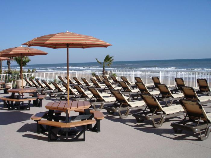 This hotel is situated on a main road in Ormond Beach, right on the sandy beach. It is about 2 miles to the center.