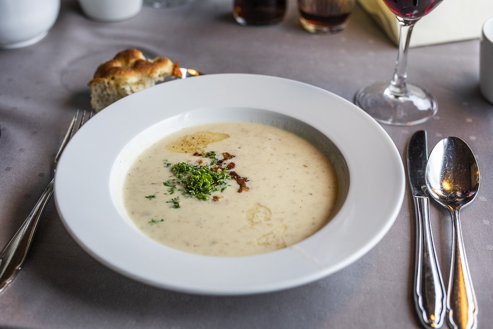 There is a dining room on the premises. A bed and breakfast package can be booked.