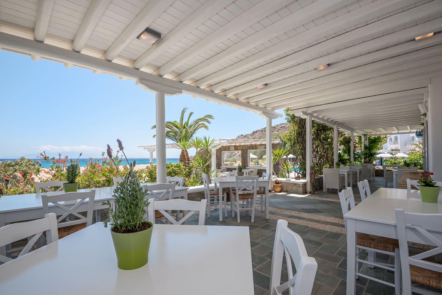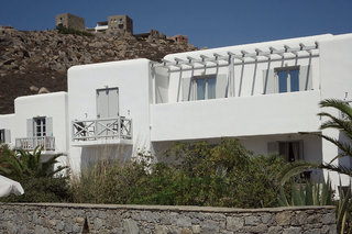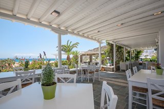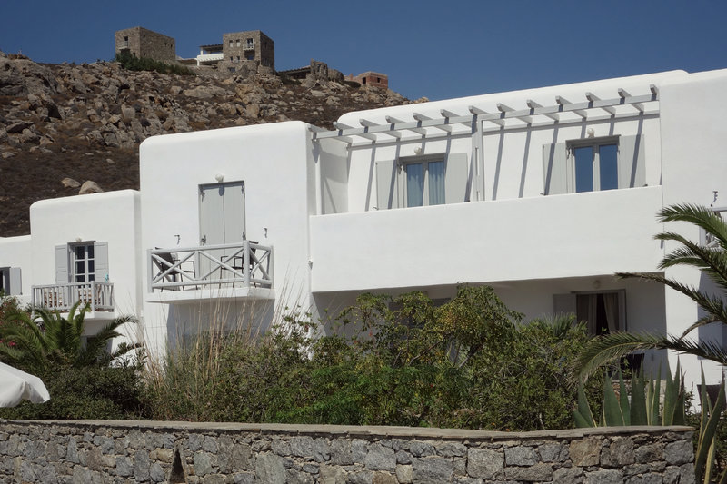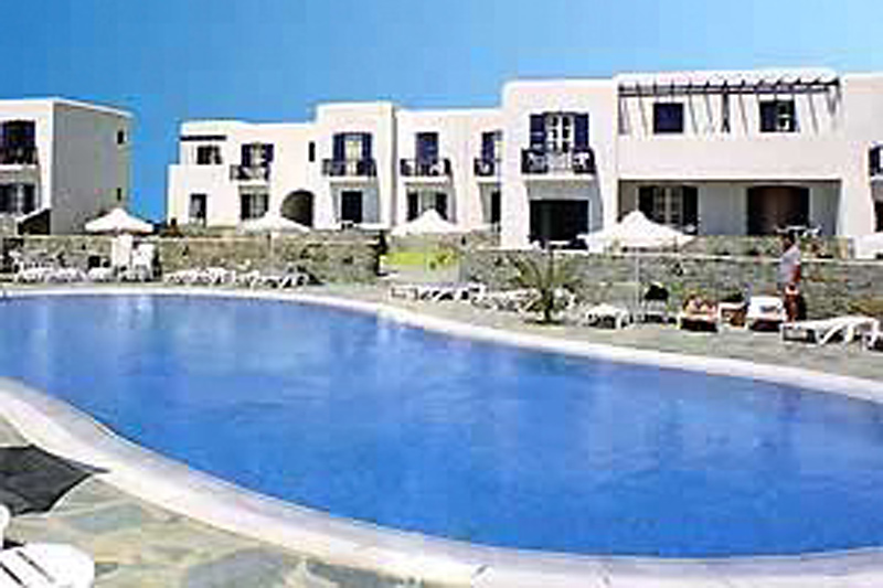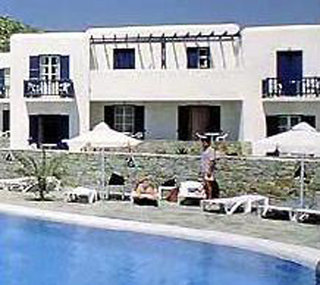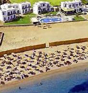This hotel is located in Agrari, right on a sandy beach that gently slopes into the water.