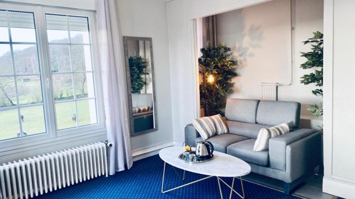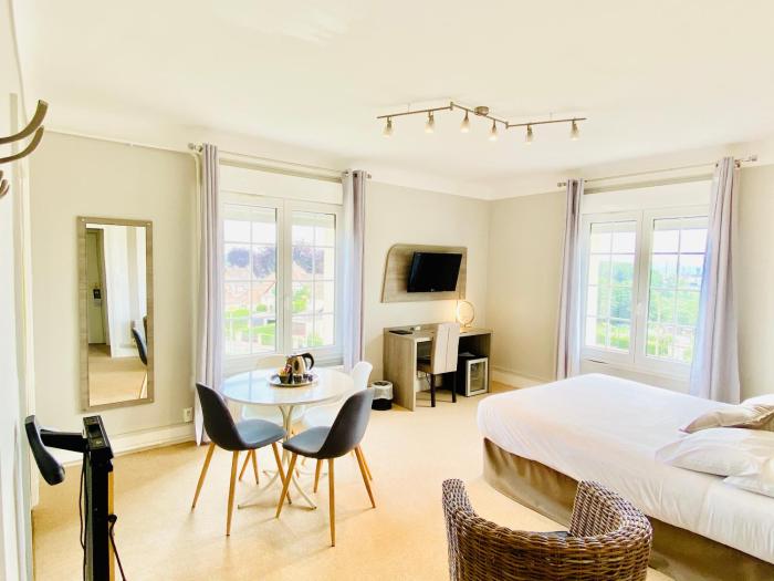 très bel établissement, chambre spacieuse, belle deco, nous avions la chambre calvados, belle vue sur la seine. Nous avons diner avec une wonderbox, très bien servi, bon, cuisine assez raffinée. le...